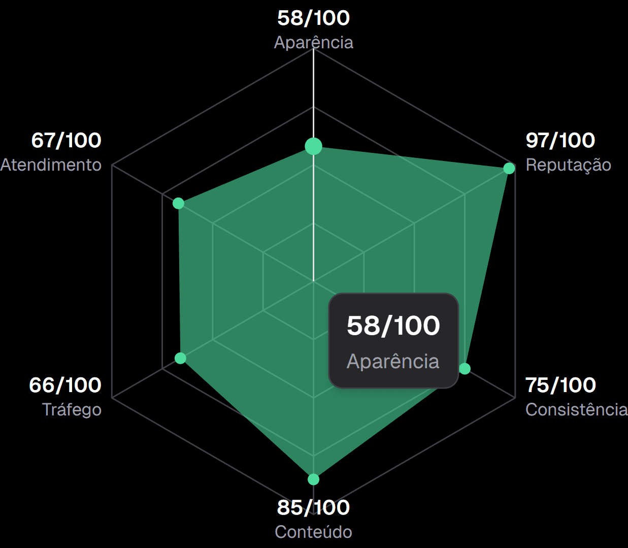 Receba uma análise visual e prática da sua presença online. Veja onde está forte, onde está falhando e como corrigir.
